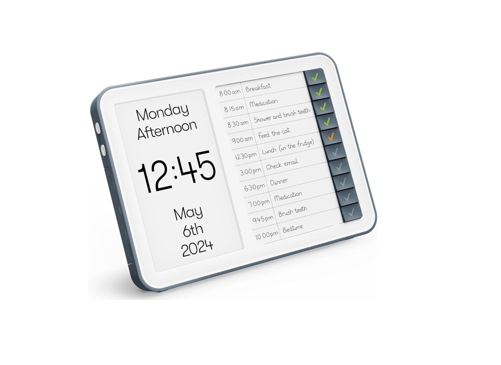 Large, high-contrast display – shows clear time, date, part of day, and scheduled tasks